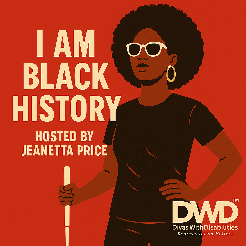 Image of three black and brown women. One is wearing a crown, one is standing with a forearm crutch, and one is in an electric wheelchair.
